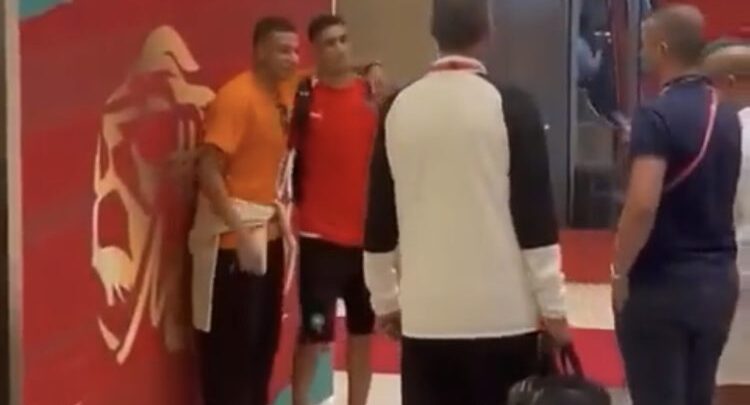 و إلتقى النجم الفرنسي، صديقه المقرب أشرف حكيمي، وعدد من اللاعبين والمسؤولين المغاربة على رأسهم رئيس الجامعة الملكية المغربية لكرة القدم فوزي لقجع.