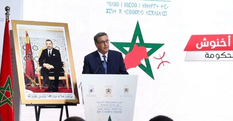واسترسل بالقول إن الحكومة باشرت “دعم الأنشطة الأمازيغية وكذا المعارض الفنية والمبادرات، التي من شأنها تثمين التراث المادي واللامادي للثقافة الأمازيغية؛ ثم تعميم إدراج اللغة الأمازيغية داخل مقرات الإدارات وعلى لوحات التسمية والتشوير ووسائل النقل وكذا المواقع الإلكترونية”.
