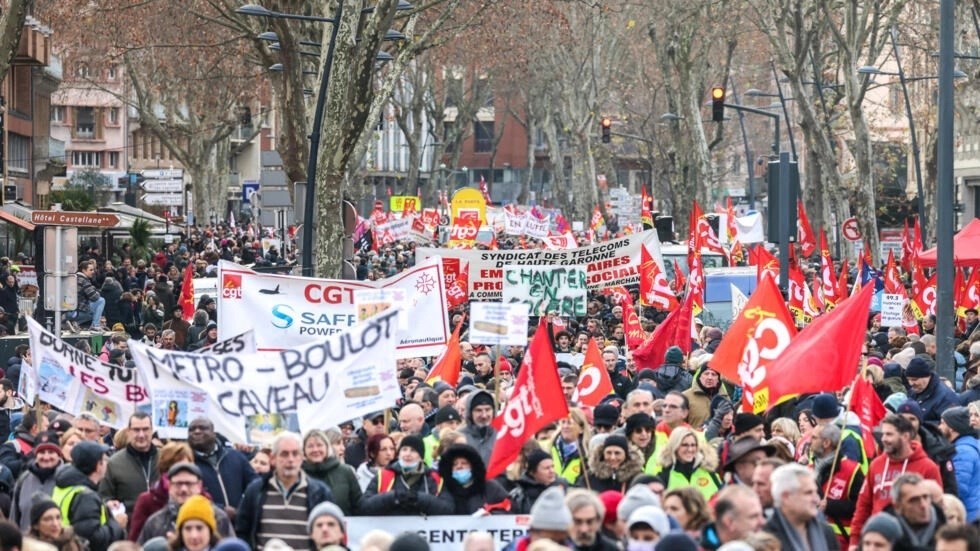 تحشد النقابات الفرنسية قواها كاملة في المعركة ضد إصلاح نظام التقاعد فتنظم تظاهرات ضخمة وإضرابات قابلة للتمديد في قطاعات استراتيجية، مراهنة على “تعطيل” البلد لإرغام الحكومة على التراجع عن مشروعها.