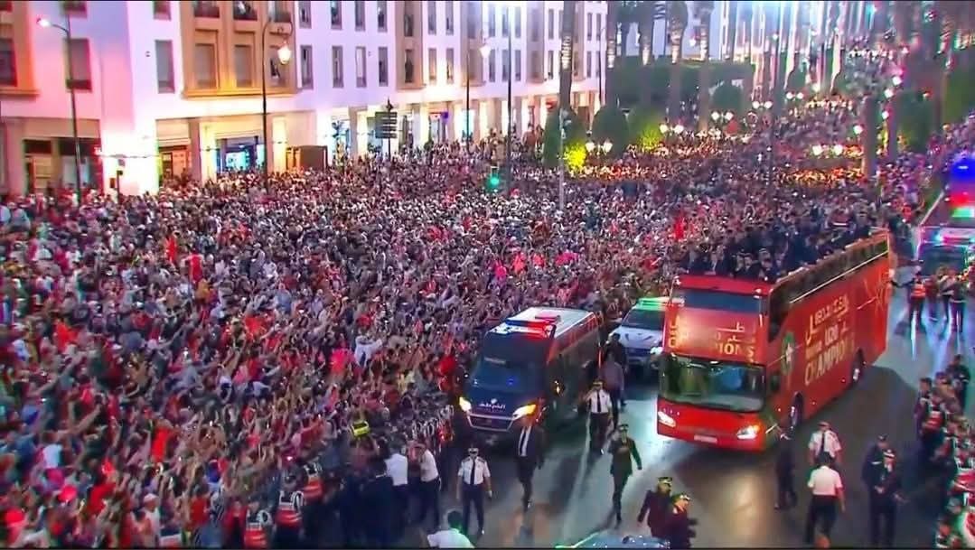امتلأت الشوارع الرئيسية للعاصمة عن آخرها، ورفرفت الأعلام الوطنية في كل مكان بينما ارتفعت الهتافات والأهازيج التي تمجد الأبطال الذين أعادوا رسم ملامح الفخر الوطني. مشهد مهيب جمع بين كبار وصغار، رجال ونساء، جاؤوا من طنجة، فاس، مراكش، أكادير، وجدة وغيرها من المدن، فقط ليعيشوا لحظة تاريخية قلّ نظيرها في الذاكرة الرياضية للمملكة.