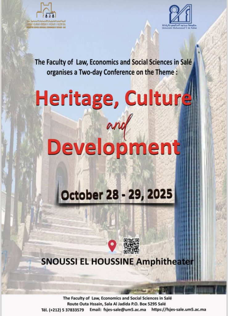 تحتضن كلية العلوم القانونية والاقتصادية والاجتماعية بسلا يومي 28 و29 أكتوبر 2025 النسخة الأولى من اللقاءات الدولية حول “الثقافة، التراث والتنمية”، في مبادرة أكاديمية وثقافية تسعى إلى إعادة التفكير في علاقة المغرب بتراثه المادي واللامادي، وإبراز دوره في التنمية المستدامة والانفتاح الحضاري.