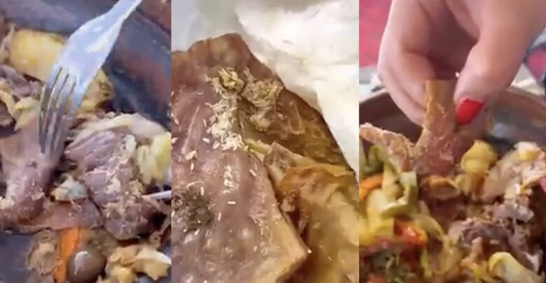 وأوضح الزبناء الذين صورو الفيديو، تراكم عدد كبير من الديدان الصغيرة الحجم داخل قطع اللحم الموجودة بداخل الطاجين، فيما رجح المواطنون ان تكون قطع اللحم التي قدمت لهم في الطاجين قد تم جلبها من لحم جيفة نظرا لتشابه حجم الديدان مع تلك التي تظهر عادة على الجيَف.