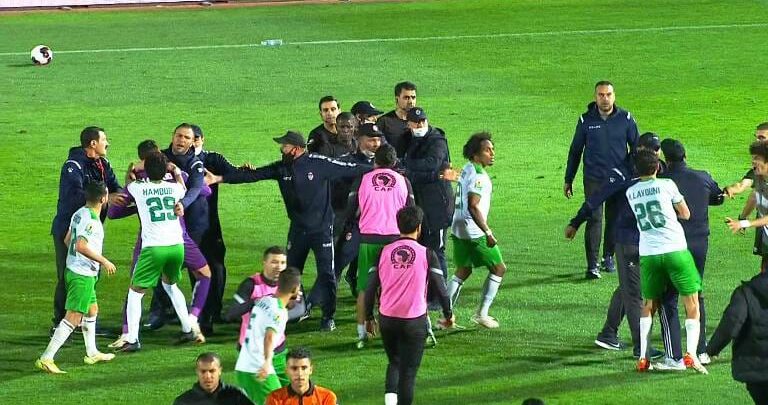 وبمجرد اطلاق صافرة النهاية عمت الفوضى مباشرة حيث توجه الجهاز الفني ولاعبي المصري نحو الحكم واشتبكوا معه احتجاجا على قراراته خلال المباراة والتي اعتبروها ظالمة بحقهم.