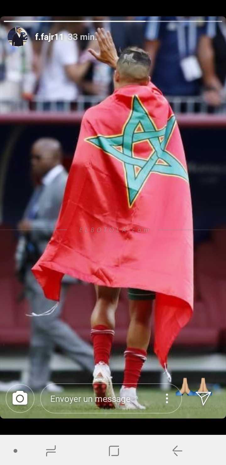 في أعقاب المباراة التي جمعت المنتخب الوطني المغربي بنظيره الزامبي، اليوم الأحد، نشر فيصل فجر، لاعب “أسود الأطلس”، صورةً له بالراية المغربية، وذلك عبر حسابه الرسمي على الموقع الاجتماعي “أنستغرام”.