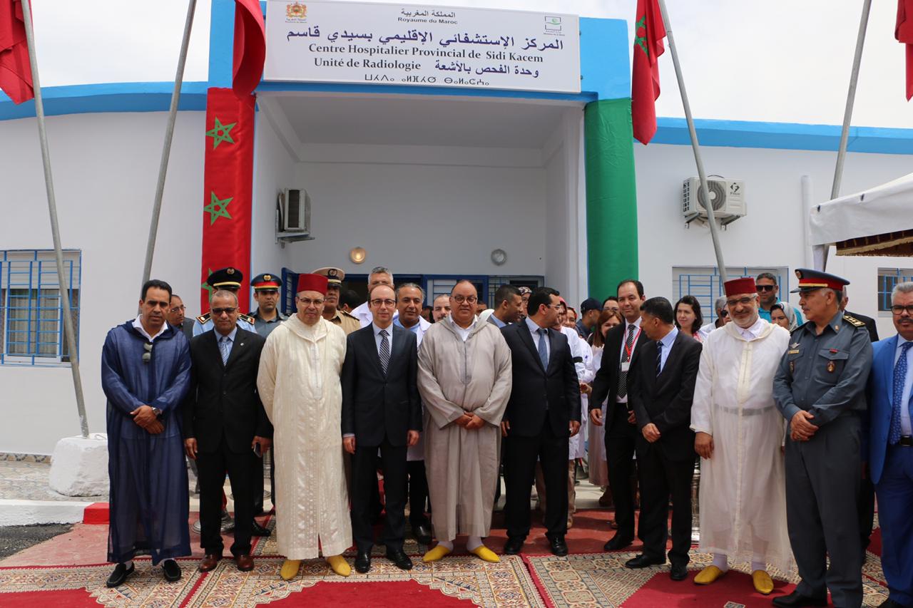 وقد أنجزت وزارة الصحة وحدة الأشعة للمركز الاستشفائي الإقليمي بشراكة مع المبادرة الوطنية للتنمية البشرية، بكلفة إجمالية قدرها 12.300.000درهم، شملت التجهيز والبناء، وفقا لمعايير حديثة وذات جودة عالية. وتتوفر هذه الوحدة على قاعة للسكانير، وقاعة للفحص بالأشعة وقاعة لتصوير الثدي بالأشعة، وقاعة للفحص بالصدى، بالإضافة إلى قاعة إعداد المريض وقاعة للاستقبال والقبول وقاعة للمداومة. ويشرف على هذه الوحدة 3 أطباء و6 ممرضين متخصصين في الأشعة. وسيستفيد من خدمات هذه الوحدة حوالي 822.270 شخص من ساكنة سيدي قاسم والأقاليم المجاورة، وذلك بهدف تقريب الخدمات الطبية من السكان المحليين، وتخفيف الضغط على المراكز الاستشفائية، والحد من التفاوتات المجالية.