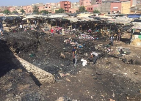 بني ملال : حريق مهول أتى على سوق شعبي وسط المدينة