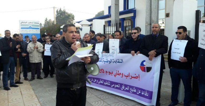 أعلنت النقابة الوطنية للتعليم العالي، عن خوضها لإضراب وطني، أيام 25 و26 و27 يونيو الجاري، لمطالبة الحكومة بالاستجابة لملفها المطلبي.ونددت النقابة الممثلة للأساتذة الجامعيين بالمغرب، في بلاغ عقب اجتماع عقدته يوم الإثنين 10يونيو الجاري، بالسياسة الحكومية التي وصفتها ب”المتهورة العاملة على التخلي عن المرافق العمومية”.وسجلت النقابة الوطنية للتعليم العالي ما اعتبرته “تناقض السياسة الحكومية التي تدعي اعتماد الحوار الاجتماعي وتتجاهل مخرجات الحوارات القطاعية”.ومن جهة وحمل الأساتذة الجامعيون، الحكومة مسؤولية تعميق الأزمة الحالية التي تعيشها منظومة التعليم العالي وتداعيات سياسة “نكث العهود والتنكر للالتزامات على أي مبادرة للإصلاح وتضييع زمن ثمين وفرص سانحة للإنقاذ”.