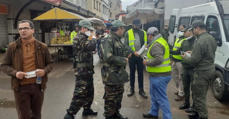 وتفرض السلطات تدابير صارمة من أجل ضمان السلامة الصحية بالأسواق والتقيد بحالة الطوارئ الصحية لتفادي تفشي وباء كورونا والنموذج من سوق بئر لحلو بسباتة.