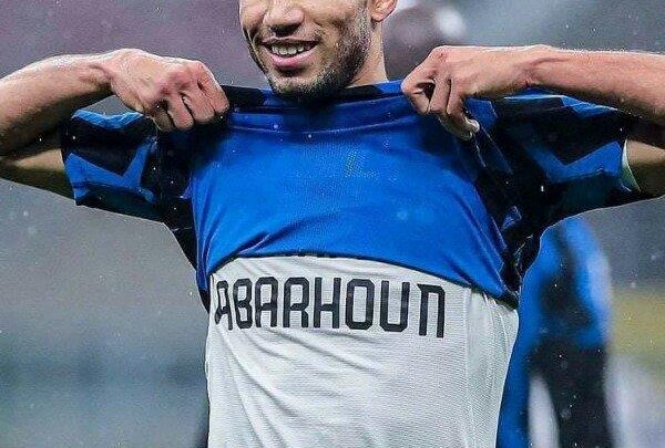 وظهر حكيمي في إحدى الصورتين يرفع قميص إنتر، ليظهر اسم محمد أبراهون على قميص آخر أثناء الاحتفال بالأهداف.